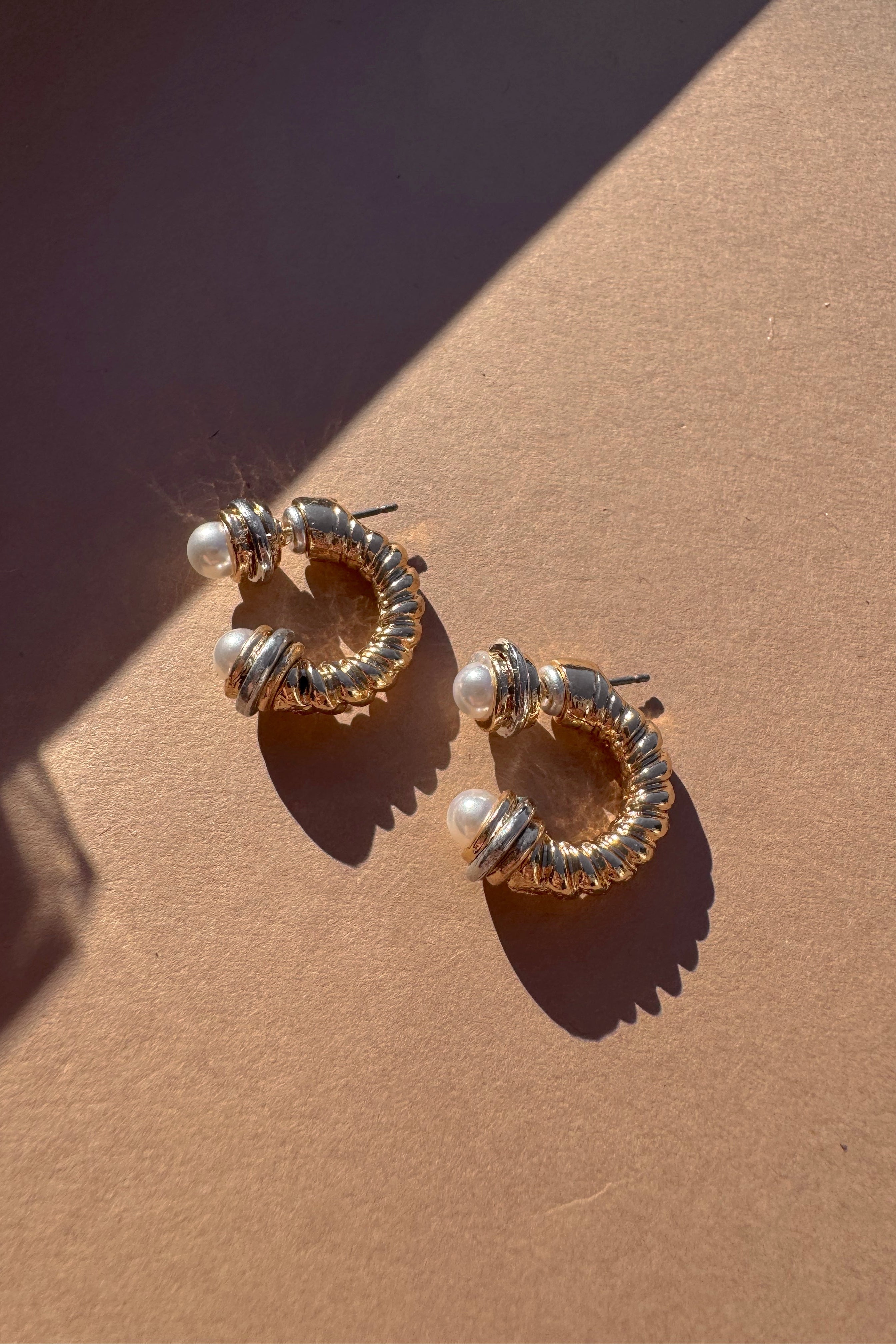 Shiloh Gold Ribbed & Pearls Mini Hoop Earring