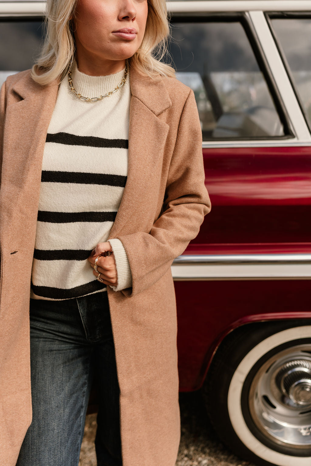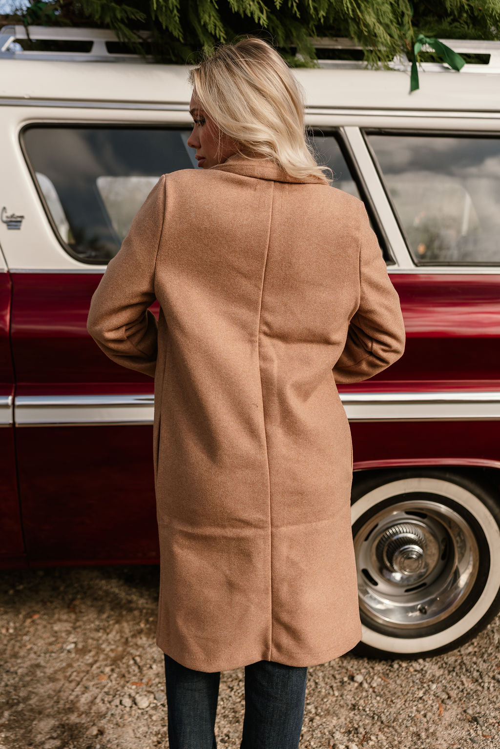 Whether styled with boots and denim for everyday outings or layered over chic ensembles for more polished looks, the Sloan Camel Collared Midi Coat brings sophistication, comfort, and timeless appeal to any outfit. Soft, versatile, and effortlessly stylish, it’s a go-to layering piece for cooler seasons.