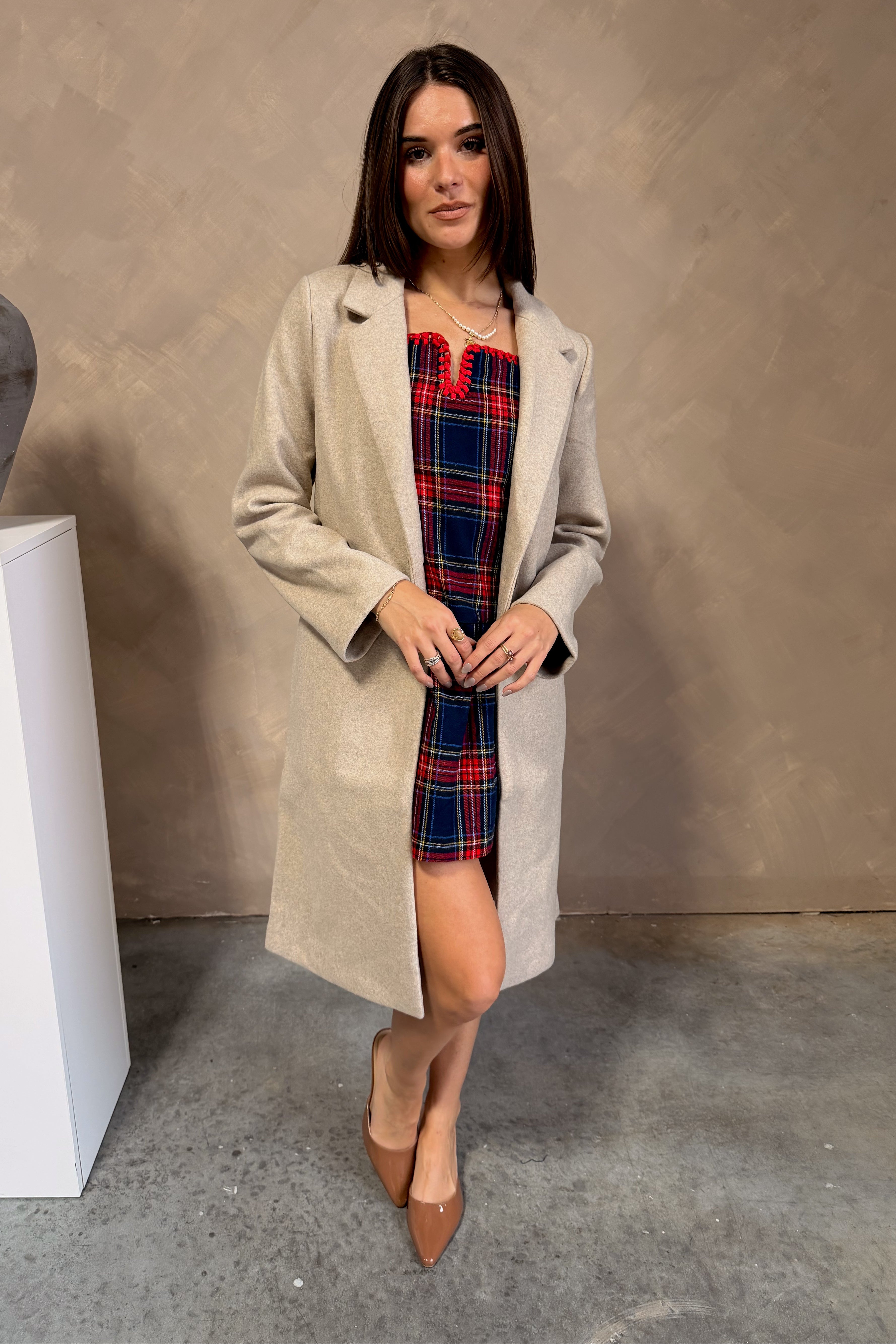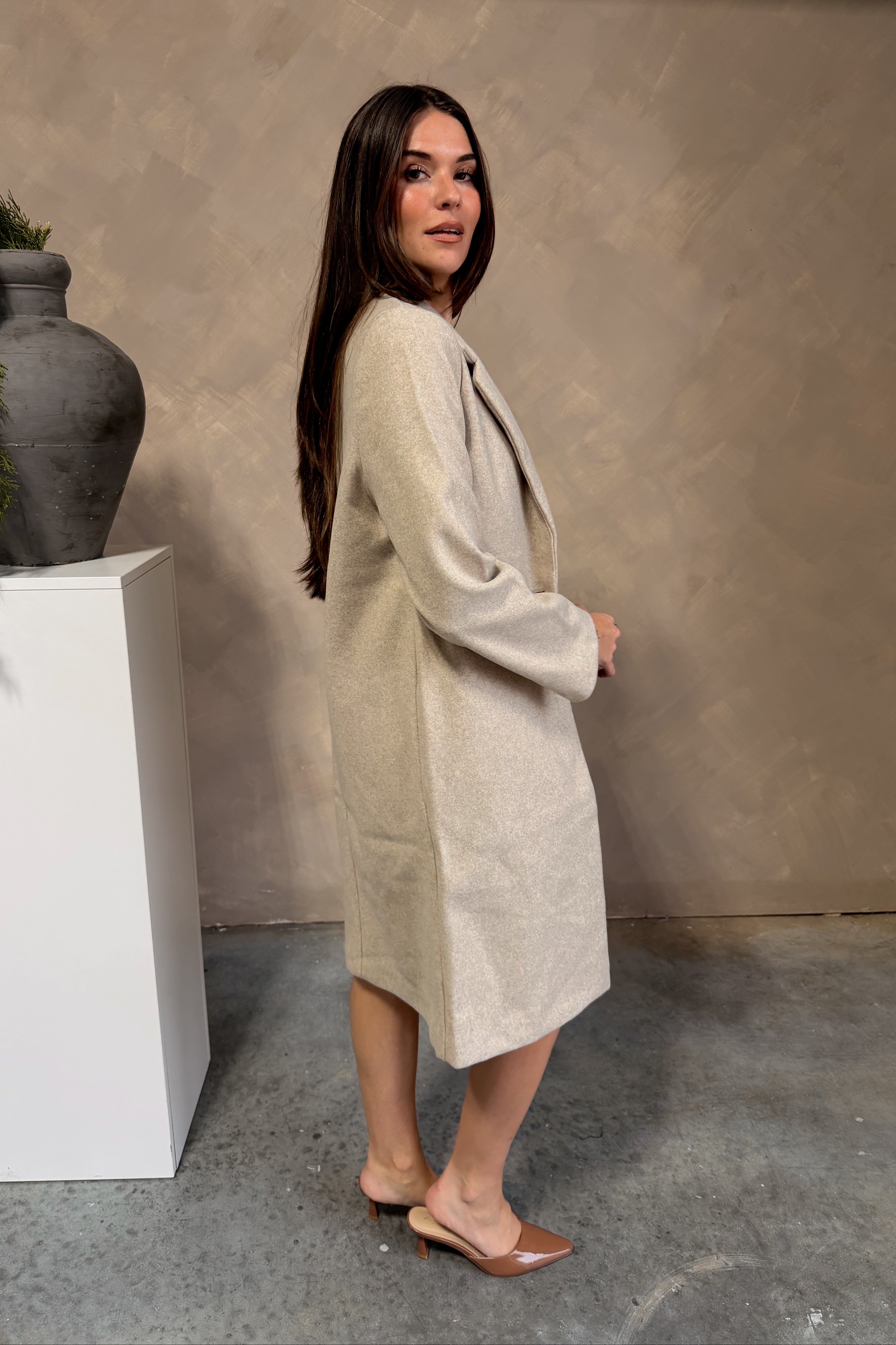 The Sloan Oatmeal Collared Midi Coat is a timeless outerwear staple that blends warmth, structure, and everyday sophistication. Crafted from cozy oatmeal heavy fabric, this coat offers a polished midi length that layers beautifully over sweaters, dresses, and workwear. The classic collar neckline and long sleeves give it a clean, tailored feel. It makes it an effortless choice for both casual days and dressed-up nights out.