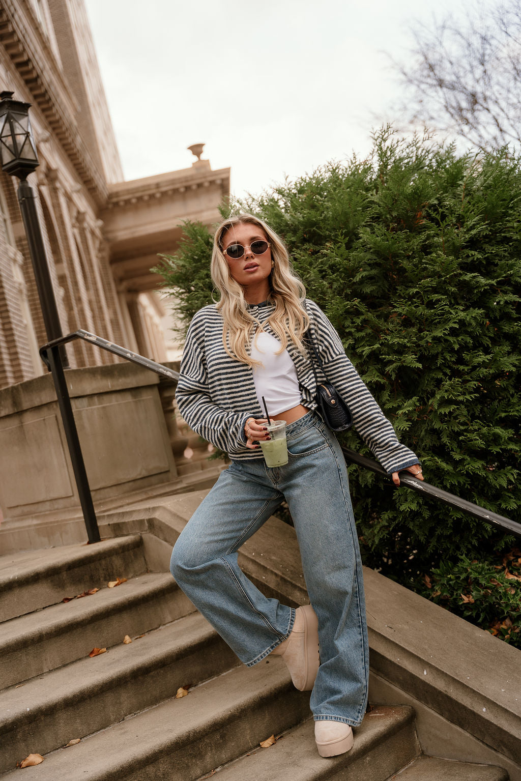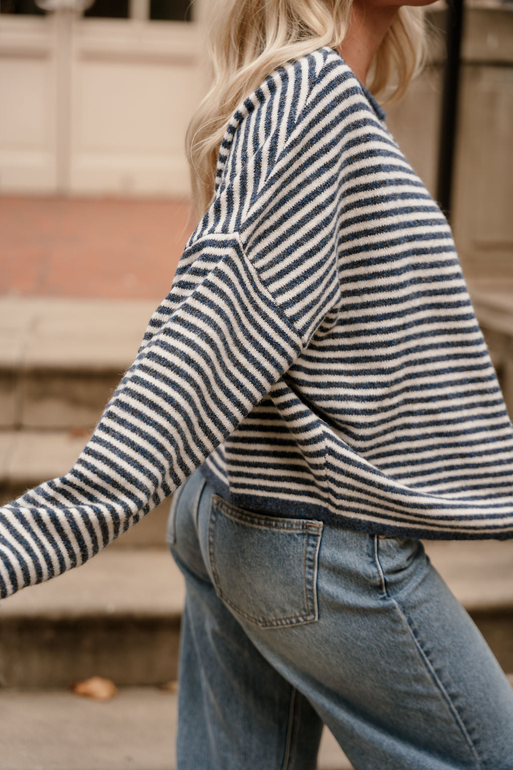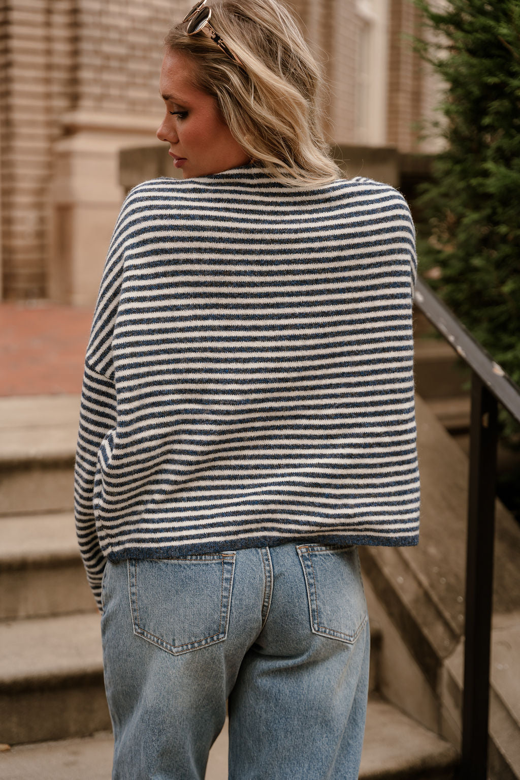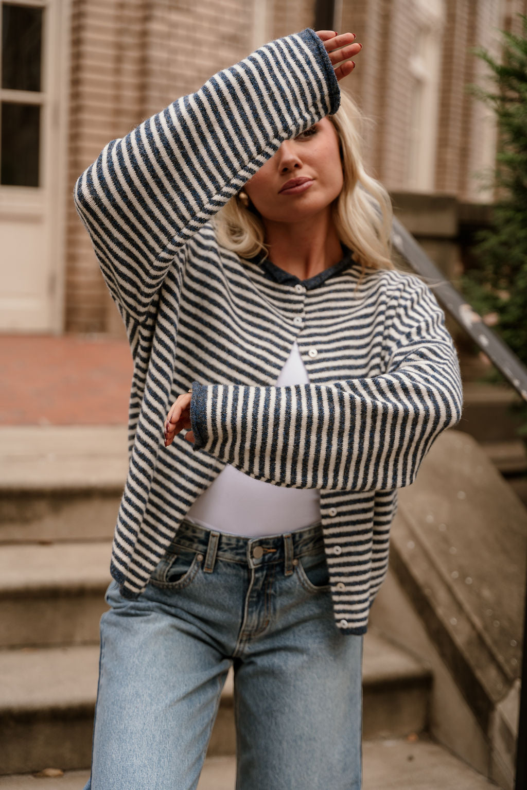 Meet the Solana Blue & Cream Stripe Knit Cardigan—your new go-to for relaxed yet polished layering. Crafted from a soft, comfortable knit in denim blue and cream tones, this cardigan showcases a chic stripe print that feels both classic and modern. The front button-up design and rounded neckline offer a clean, versatile look, while the long sleeves provide cozy coverage for cooler days. Whether draped over a simple tee or styled with tailored pieces, the Solana cardigan brings effortless charm to any outfit.