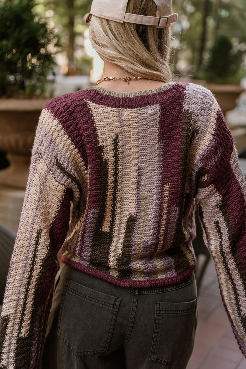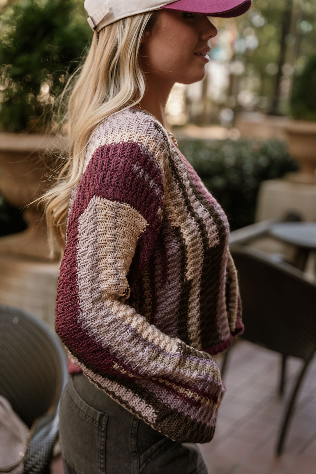 The Soraya Purple Multi Knit Cardigan brings cozy charm and vibrant style to your wardrobe. Featuring a mix of dark purple, light purple, brown, and cream knit fabric, this cardigan stands out with its soft texture and eye-catching color palette. The front button-up design and v-neckline add a classic touch, while the dropped shoulders and long flare sleeves create a relaxed, feminine silhouette. Perfect for layering on cool days, the Soraya cardigan blends comfort and statement-making style effortlessly.