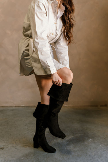 The Special Someone Black Suede Boot is the epitome of sleek sophistication. Featuring a luxurious black suede upper, this boot showcases a stylish slouched, folded shaft for a modern, laid-back look. The block heel adds height and comfort, while the square-round toe gives it a unique, on-trend silhouette. With a convenient side zipper for easy wear, this boot is perfect for elevating both casual and dressy outfits, making it a versatile addition to your wardrobe.