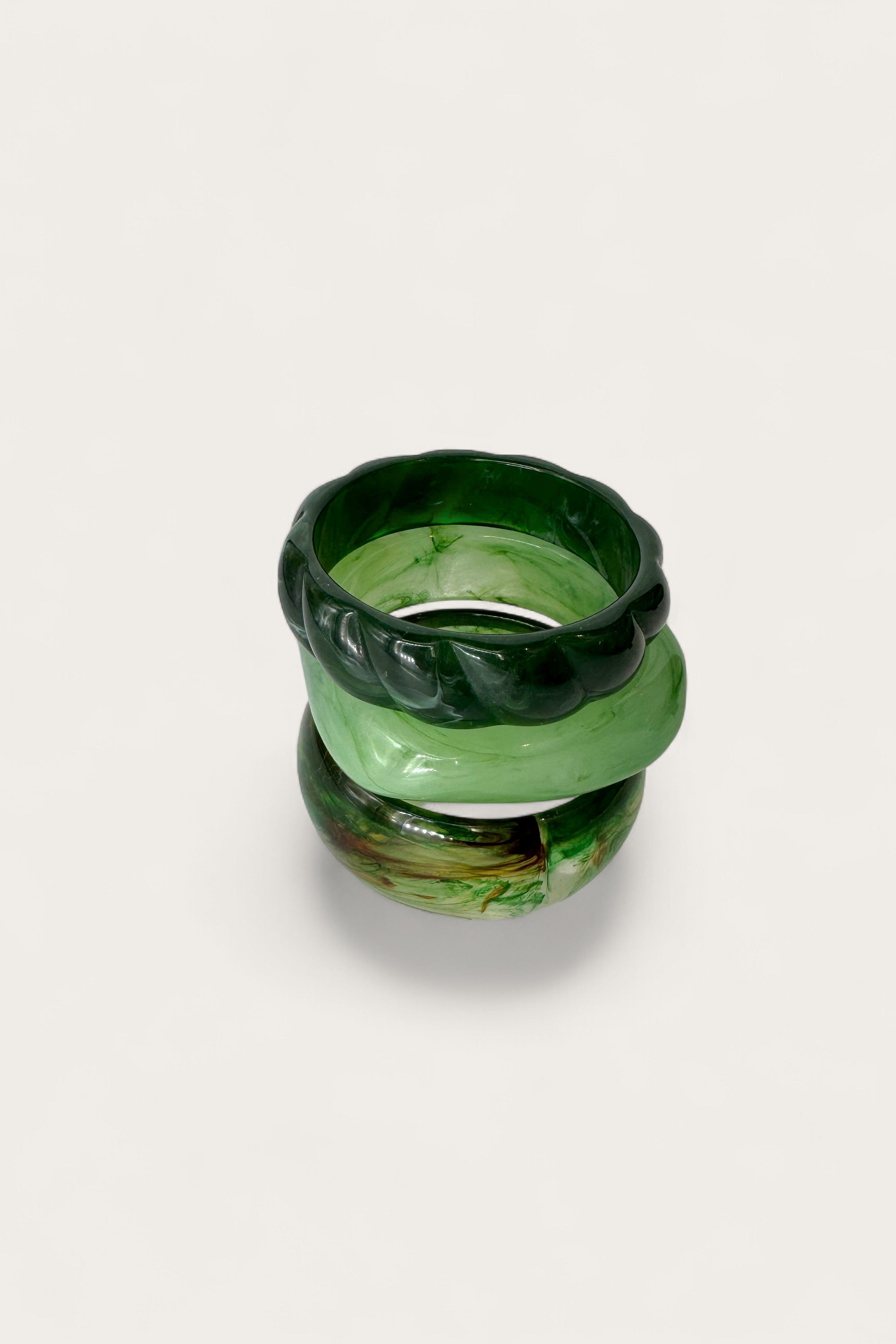 Add rich color and modern texture to your look with the Stevie Green Multi Bangle Set, a bold yet refined trio designed to stand out. This stylish set features a dark green twisted bangle that adds sculptural interest, paired with a light green marble square bangle for a contemporary edge and a classic green marble bangle for organic balance. Together, the mix of shapes, finishes, and tones creates an effortlessly layered statement.