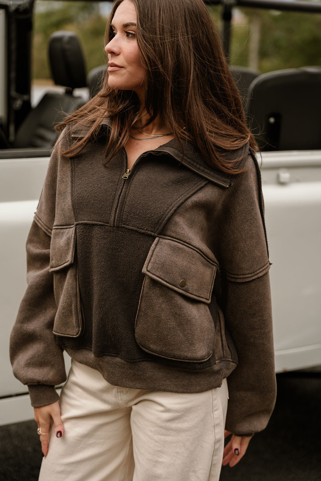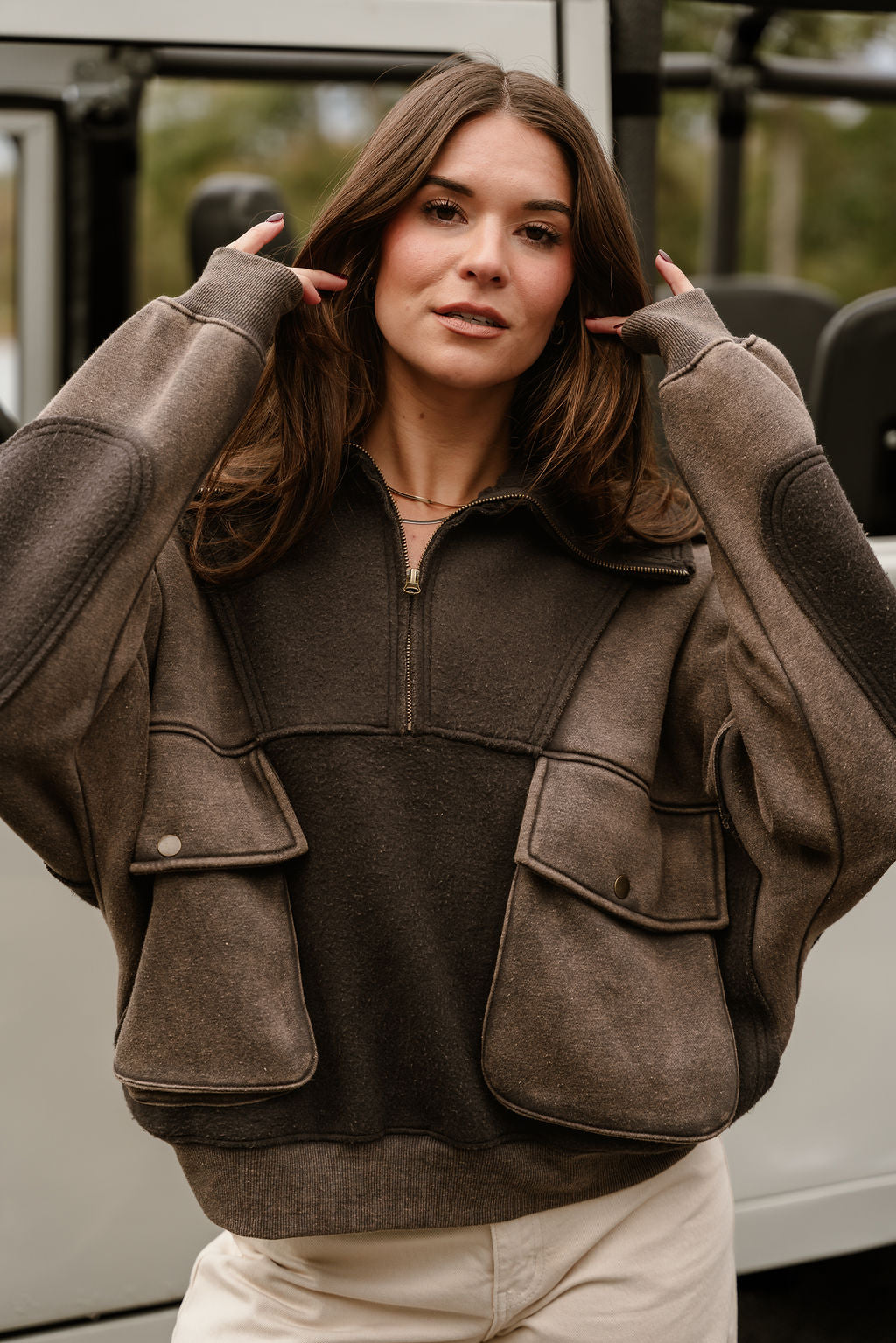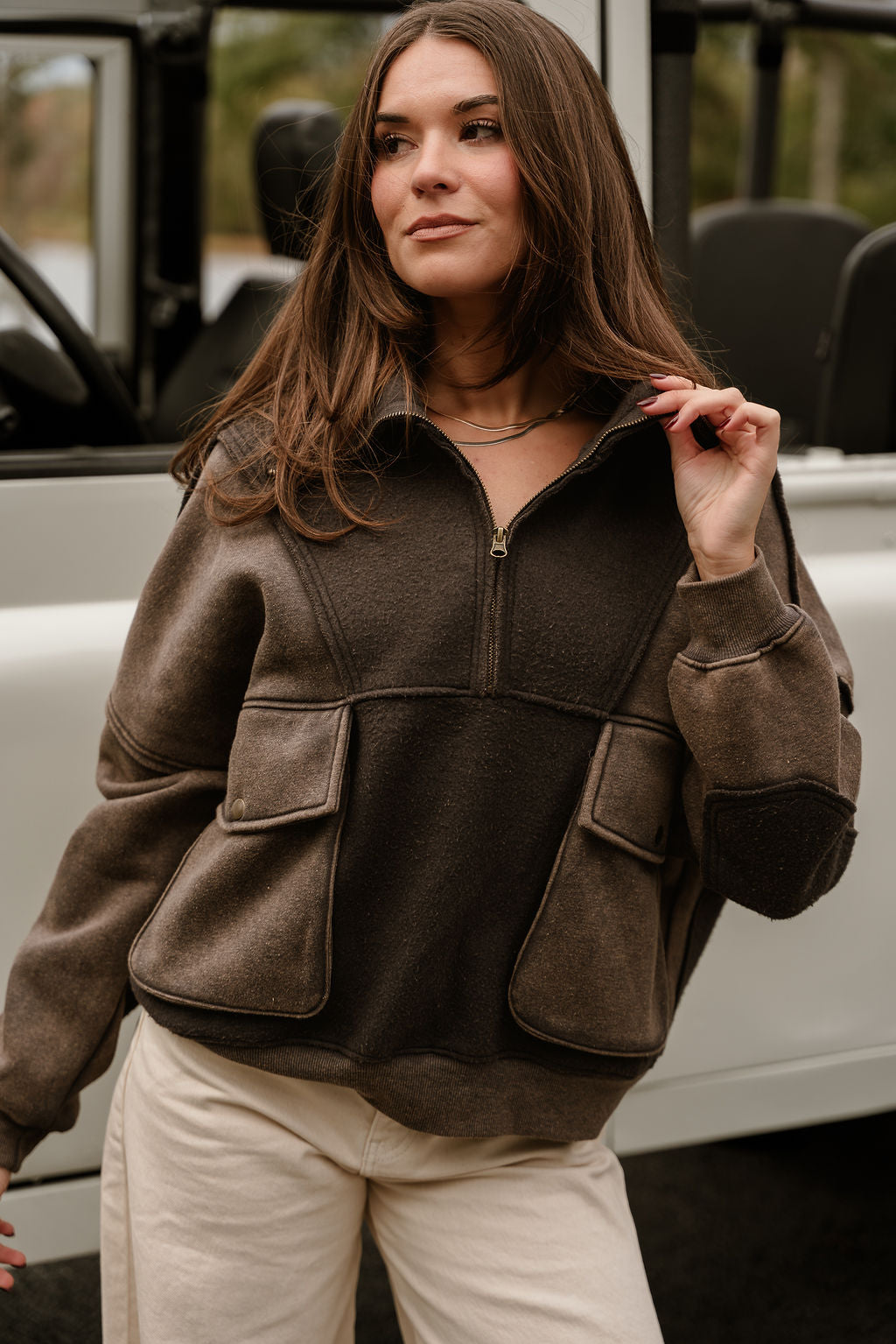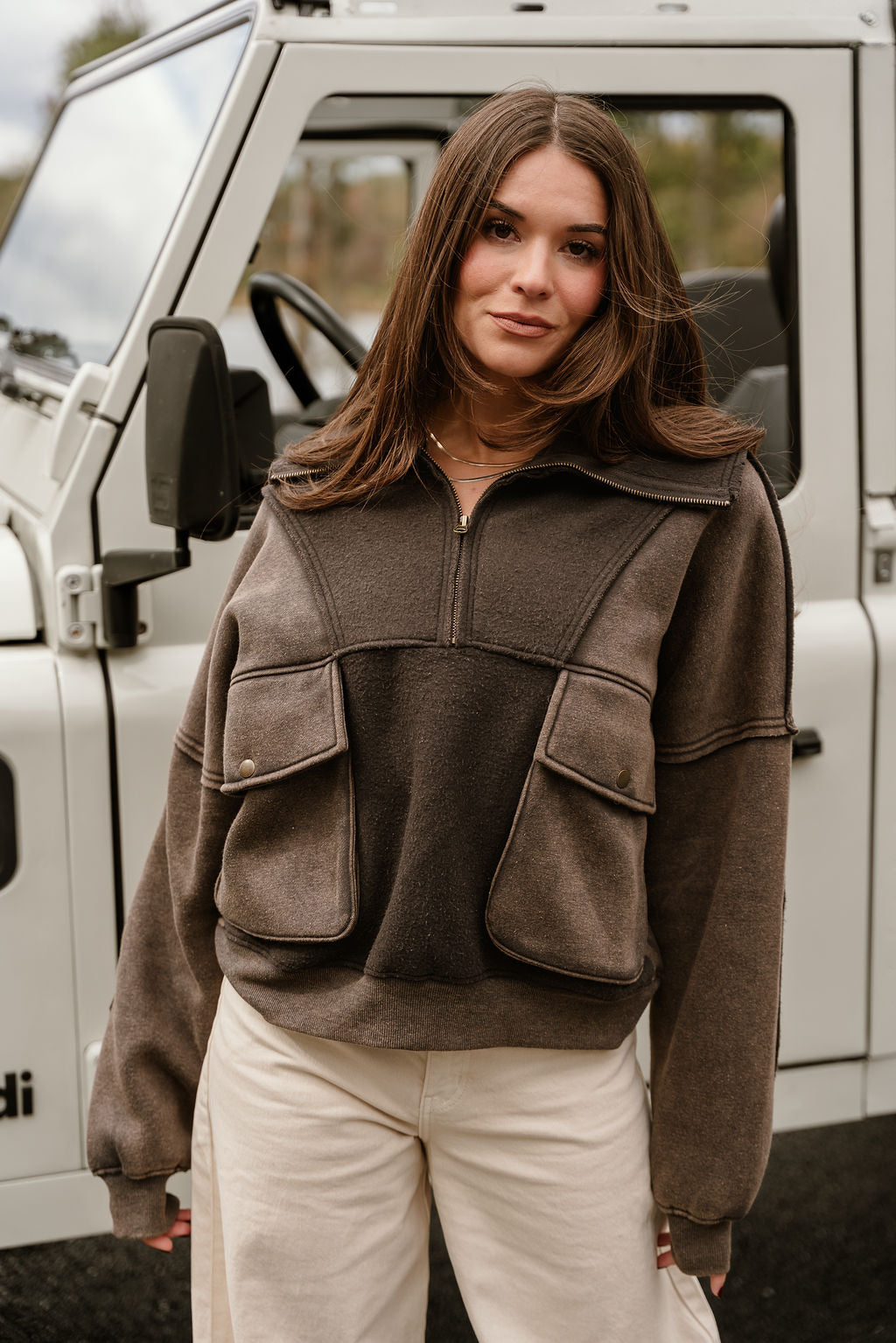Stevie Washed Charcoal Grey Quarter Zip Pullover