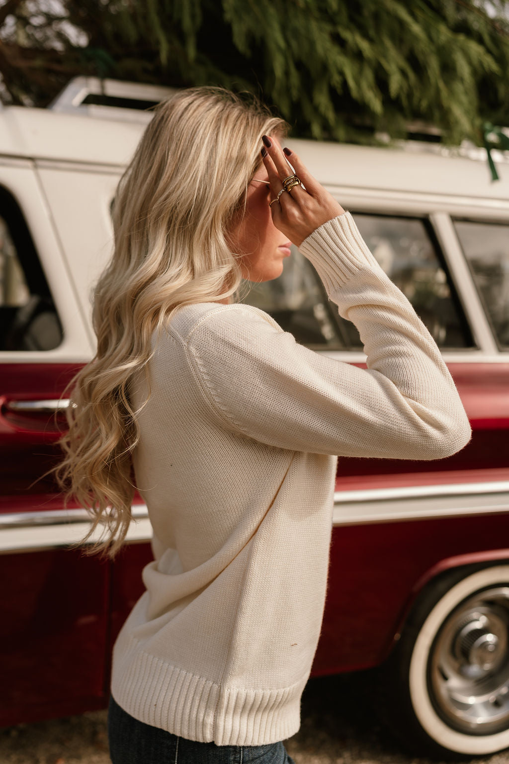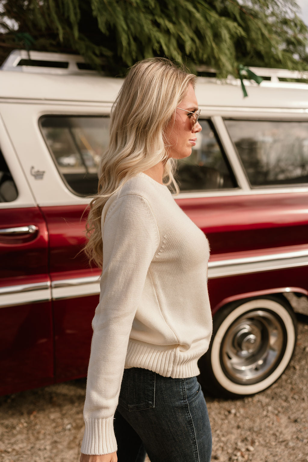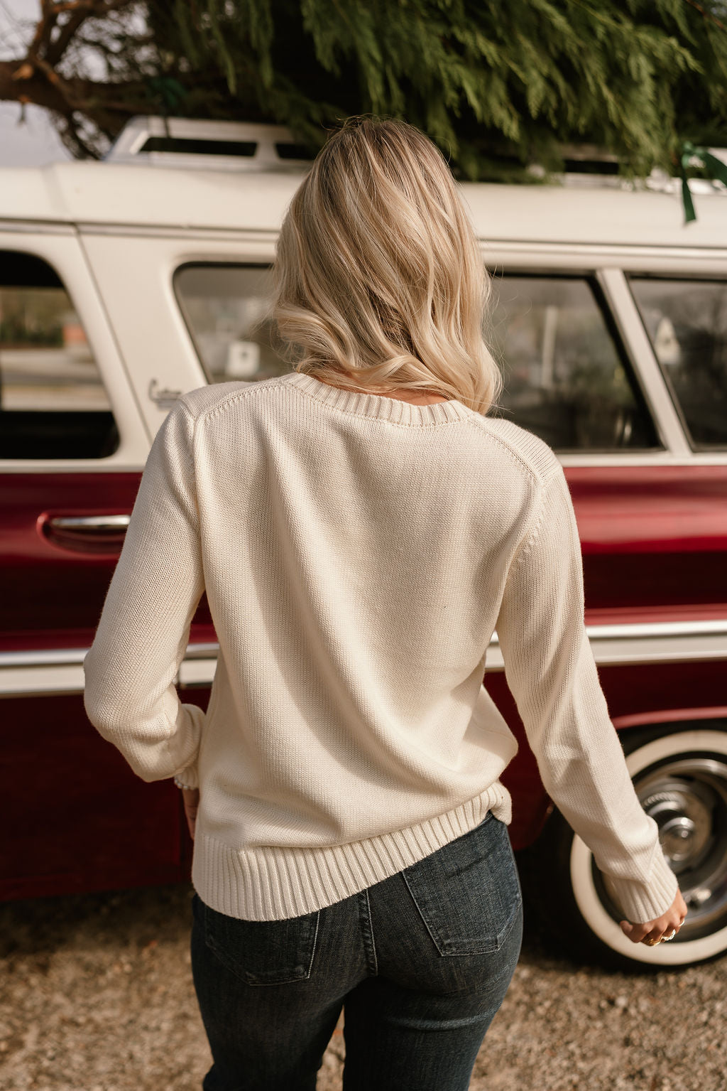 Ribbed hems add structure and a polished finish to the relaxed silhouette, making it easy to pair with jeans, leggings, or skirts. Whether you’re lounging at home or heading out for a casual day, the Tegan Sweater combines warmth, comfort, and playful style in one versatile piece.