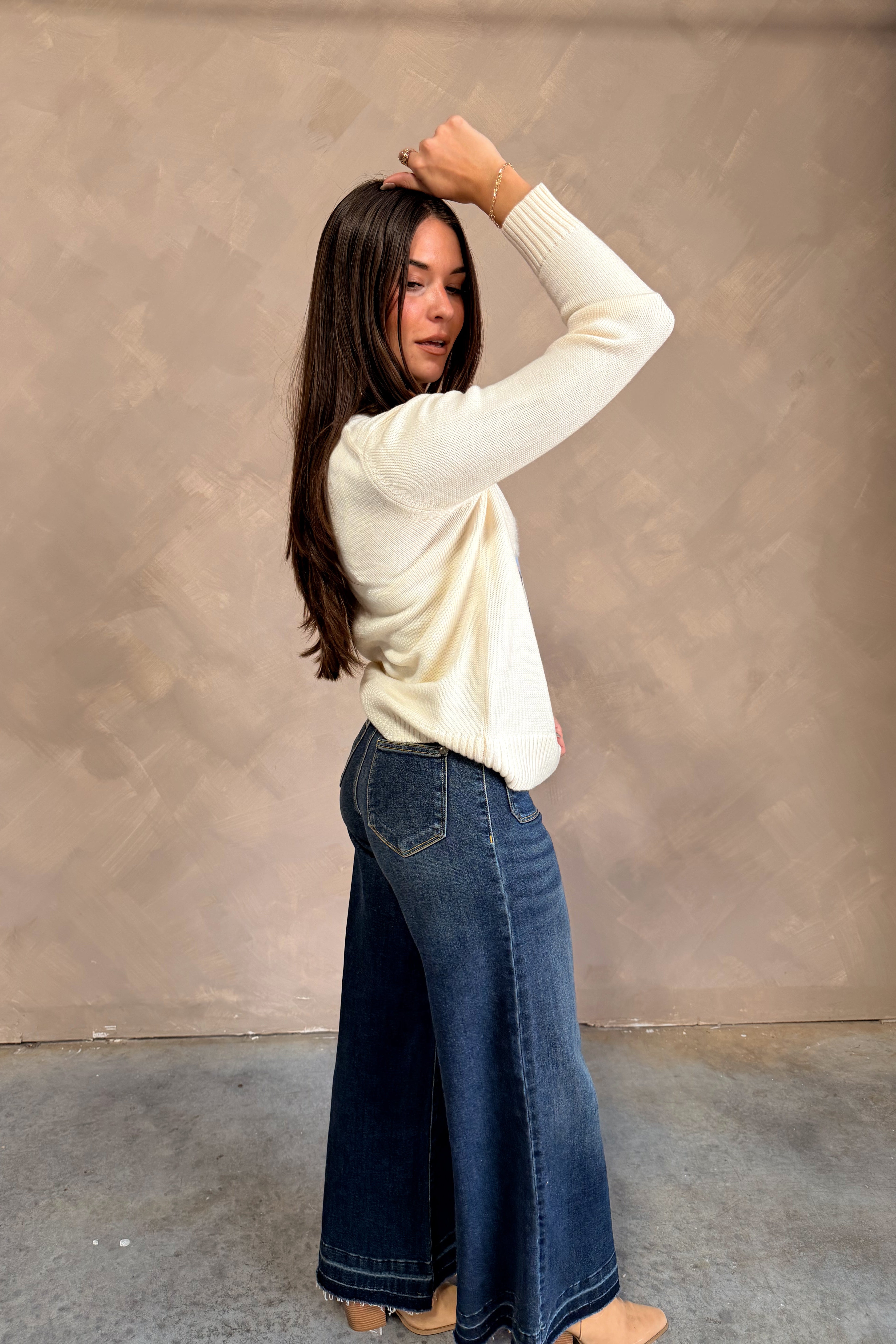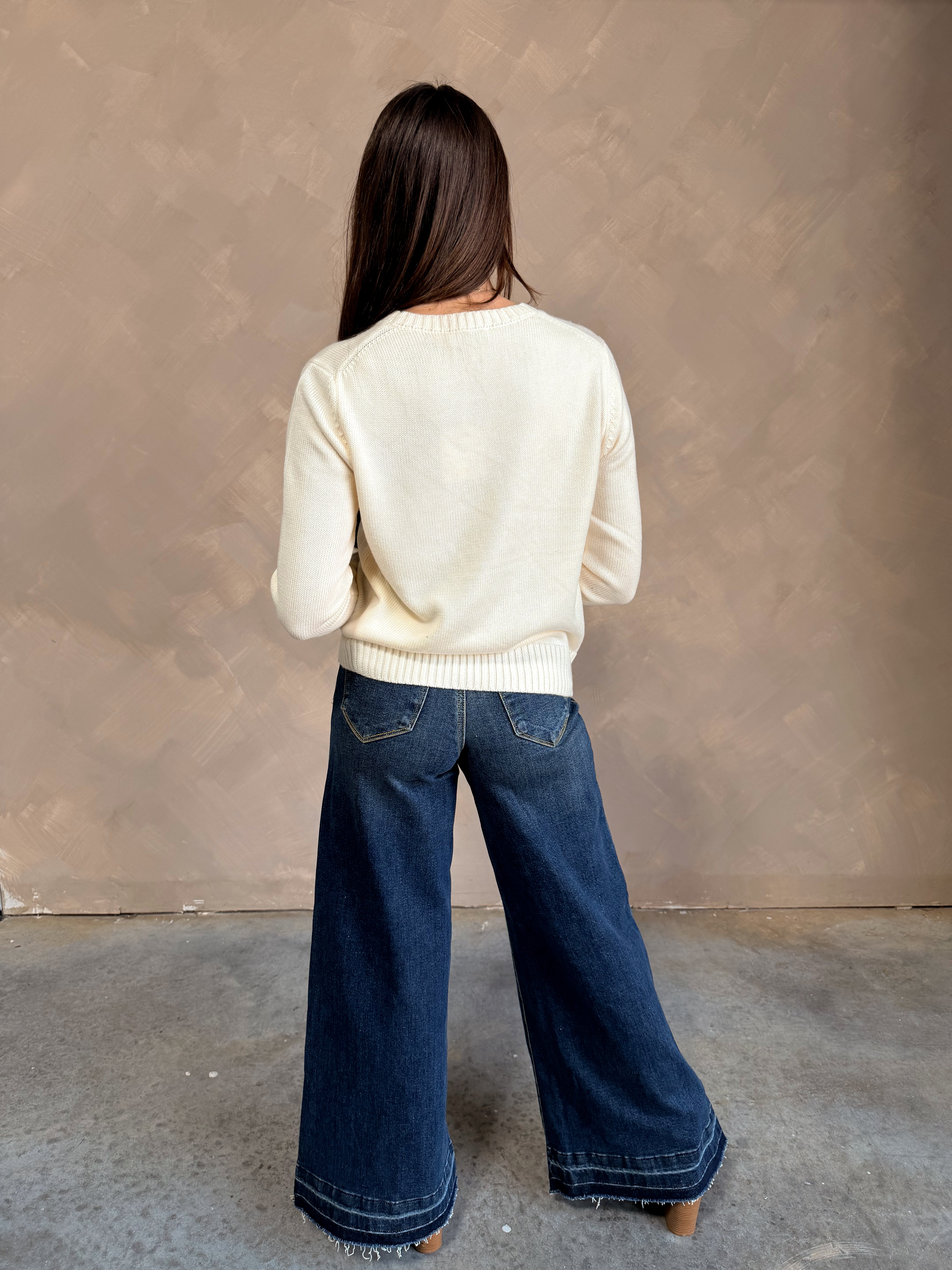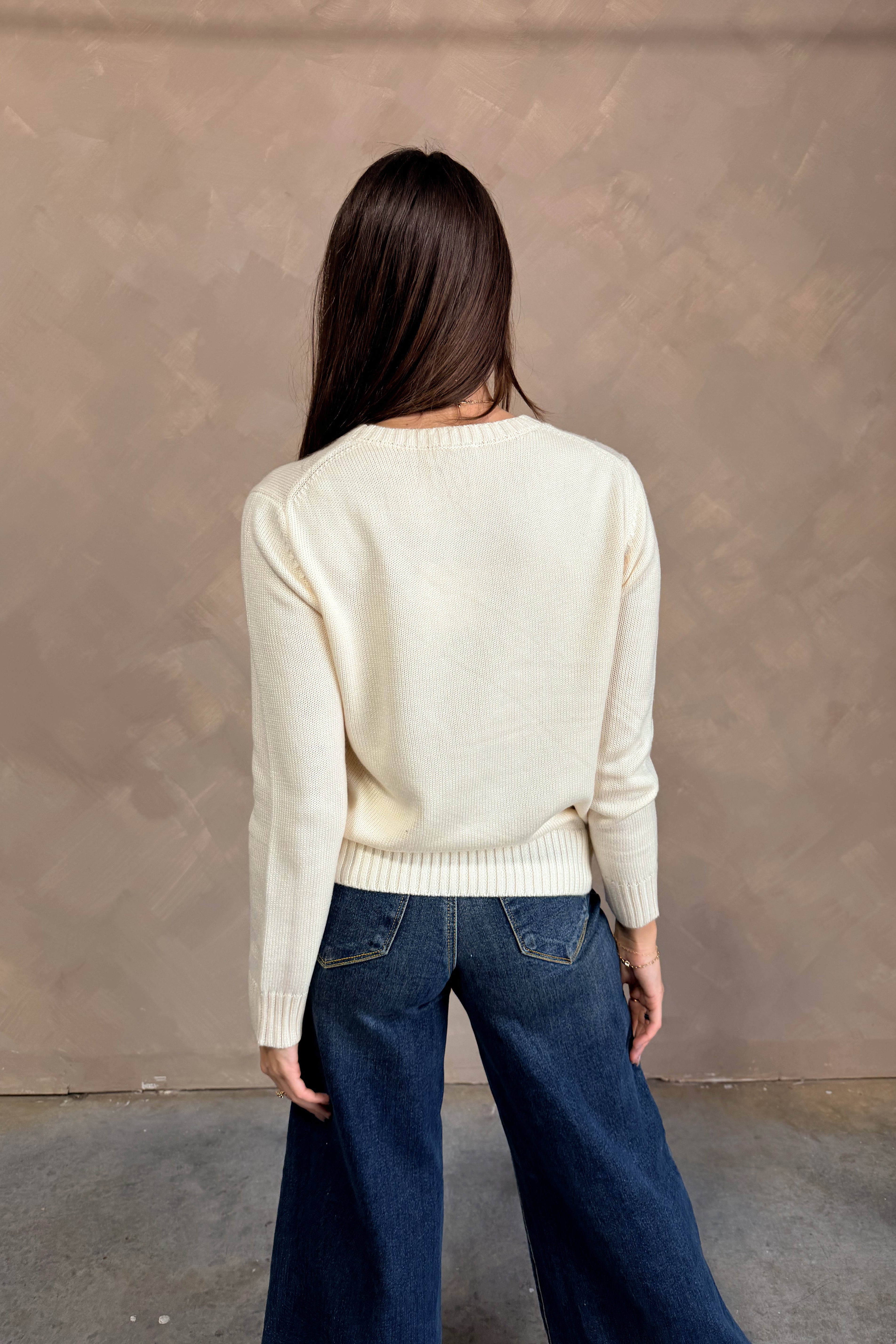 Ribbed hems add structure and a polished finish to the relaxed silhouette, making it easy to pair with jeans, leggings, or skirts. Whether you’re lounging at home or heading out for a casual day, the Tegan Sweater combines warmth, comfort, and playful style in one versatile piece.
