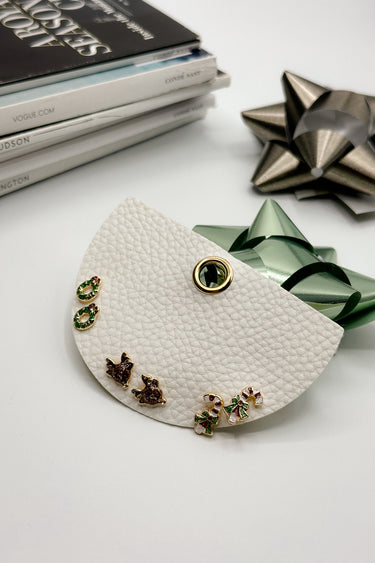 The Tis The Season Studs Earring Set is a festive trio perfect for spreading holiday cheer. This charming set includes candy cane studs, playful reindeer studs, and elegant wreath studs, capturing the spirit of the season in every detail. Whether you're dressing up for holiday parties or adding a festive touch to your everyday look, these earrings are the perfect accessory to celebrate the most wonderful time of the year.