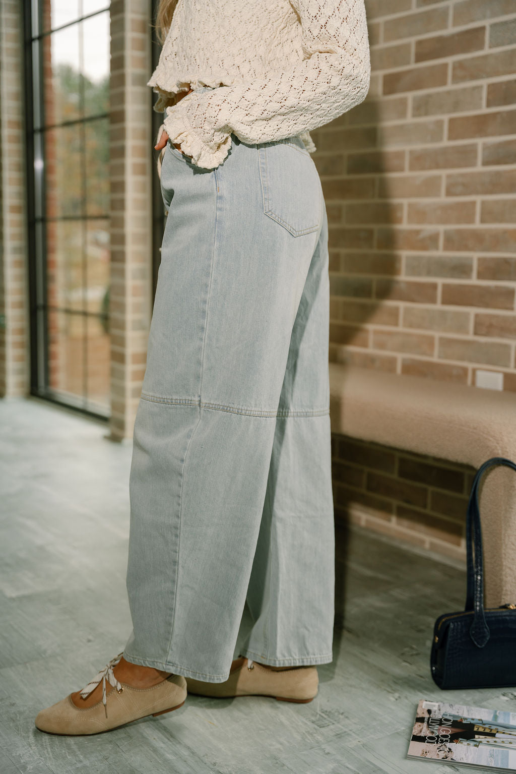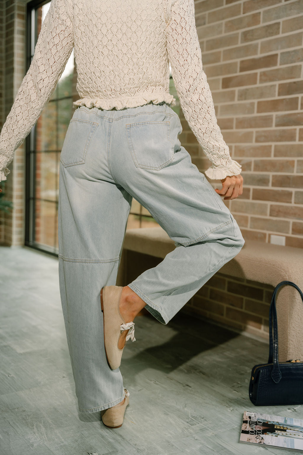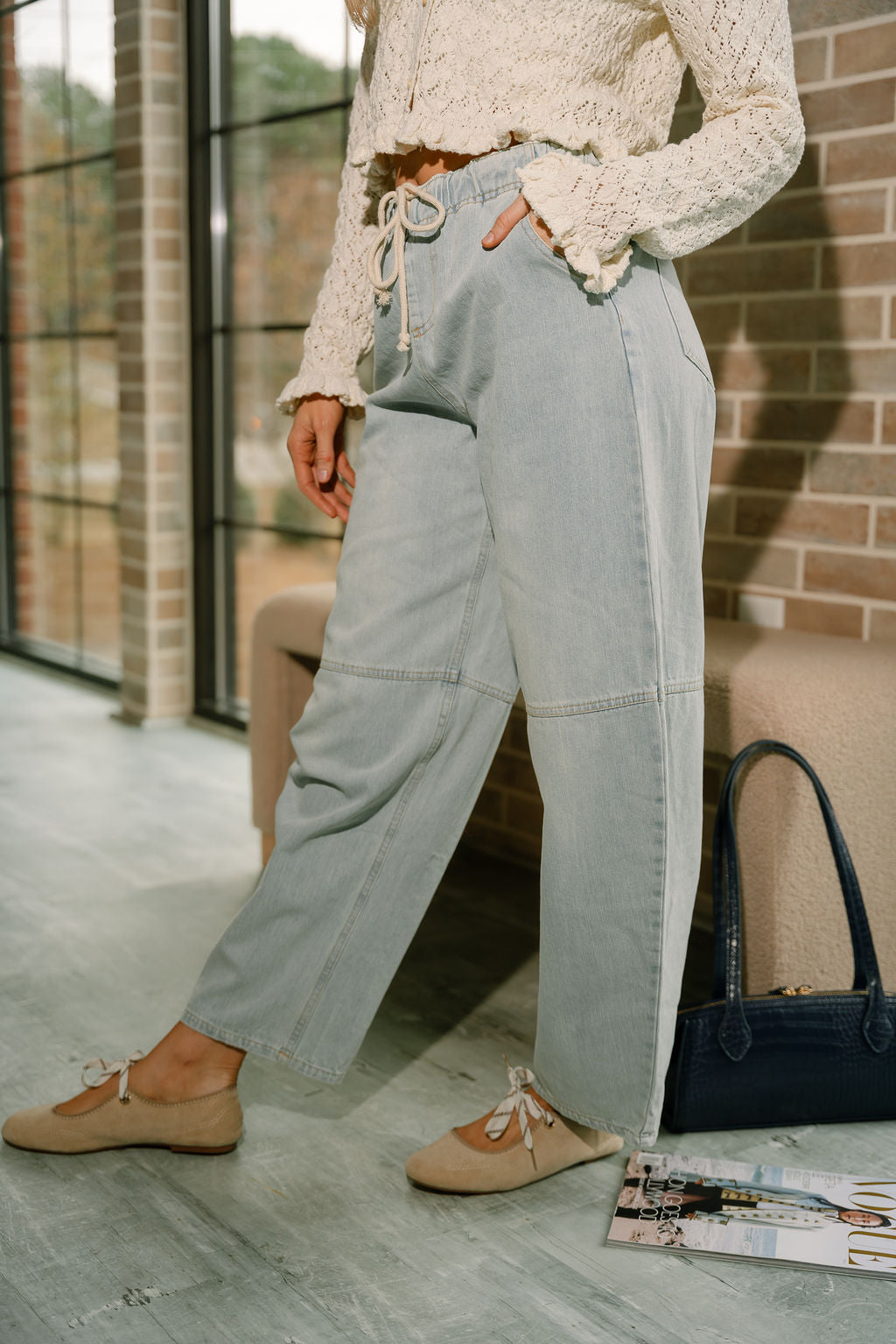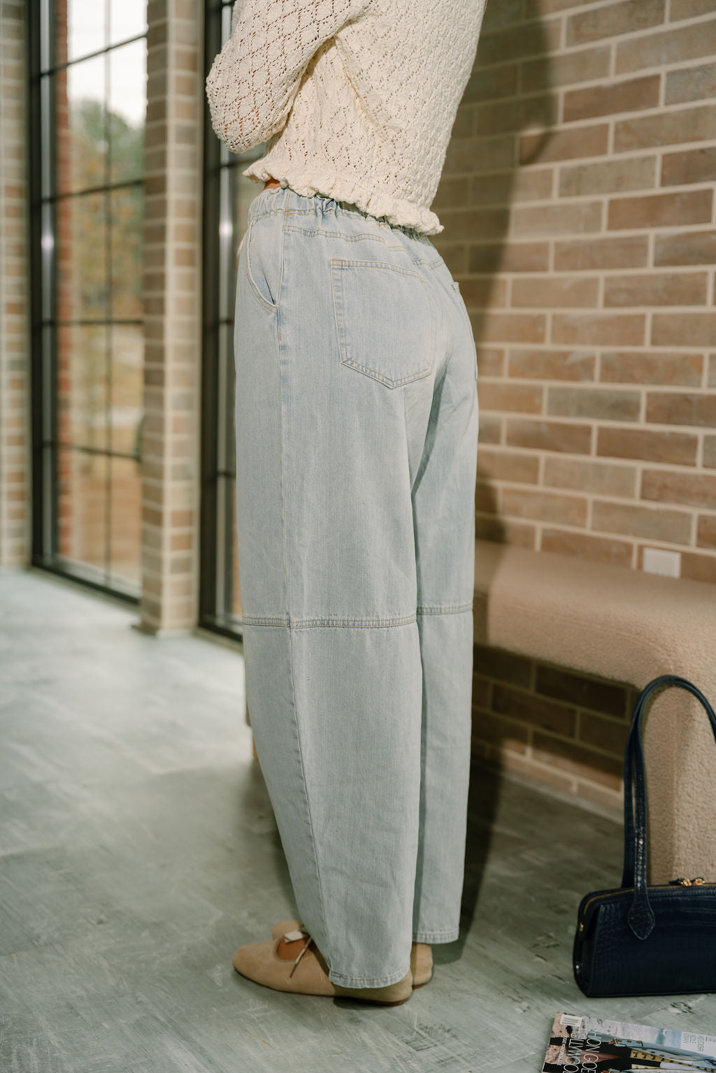 The Trista Barrel Leg Drawstring Jeans combine laid-back comfort with a modern denim silhouette. Crafted from light wash denim, these jeans feature a relaxed barrel leg shape that adds subtle structure while keeping the look effortless and on-trend. The elastic waistband creates an easy pull-on fit that feels comfortable all day long.