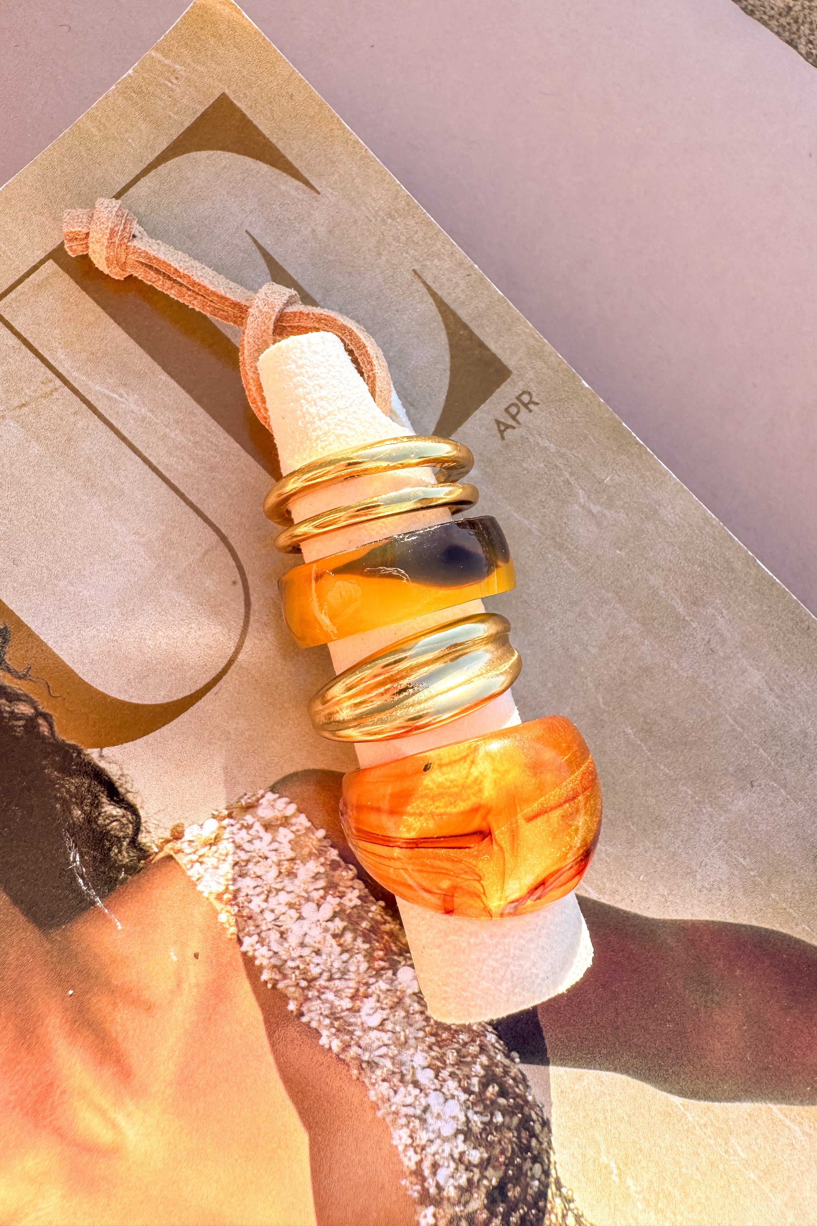Bold and versatile, the Valerie Gold & Tortoise Ring Set is designed for effortless stacking and standout style. This set includes four rings—two sleek gold bands and two brown tortoise-style acrylic rings—for the perfect mix of classic shine and modern texture. Wear them together or mix and match to elevate any look with ease.