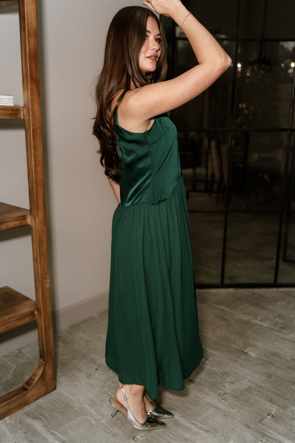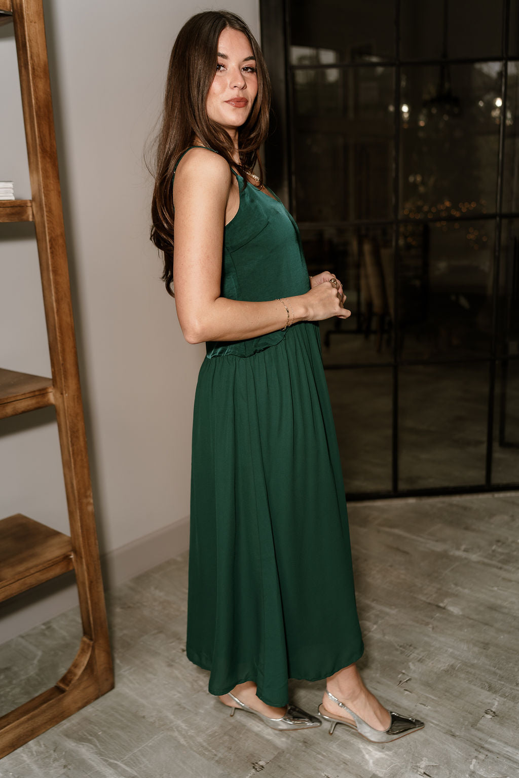 With its rich jewel-tone color and versatile styling, this dress pairs effortlessly with heels, delicate jewelry, and your favorite clutch for a complete, elevated look. Chic yet understated, the Vera Hunter Green Midi Dress brings graceful charm to any occasion, making it a standout piece you’ll reach for season after season.
