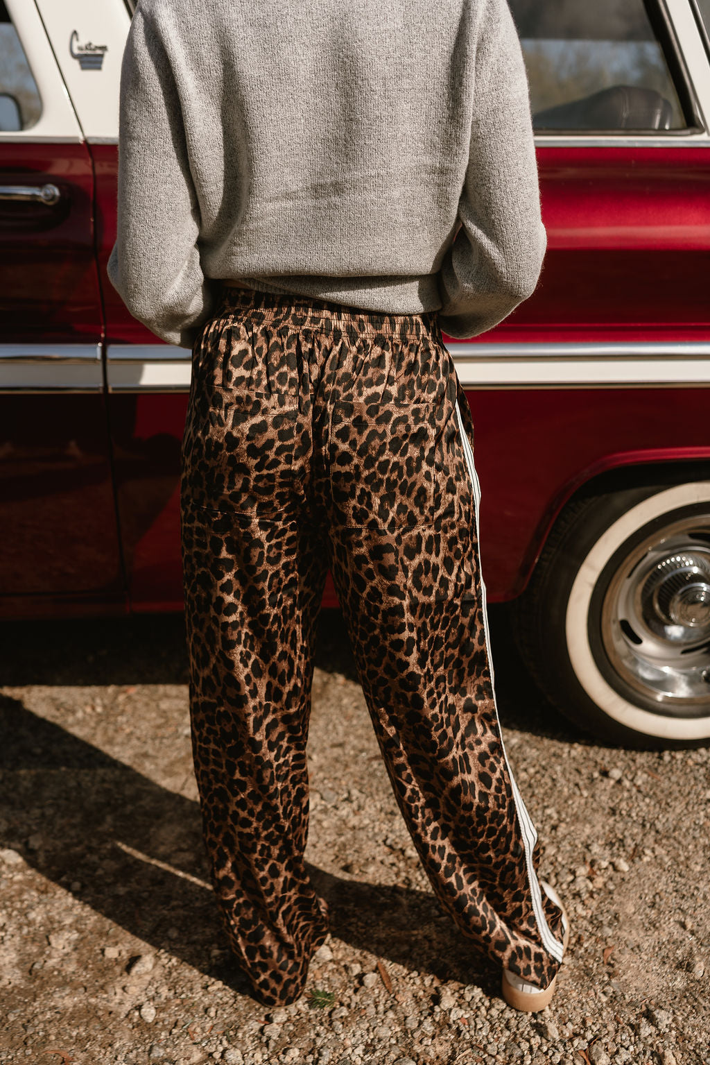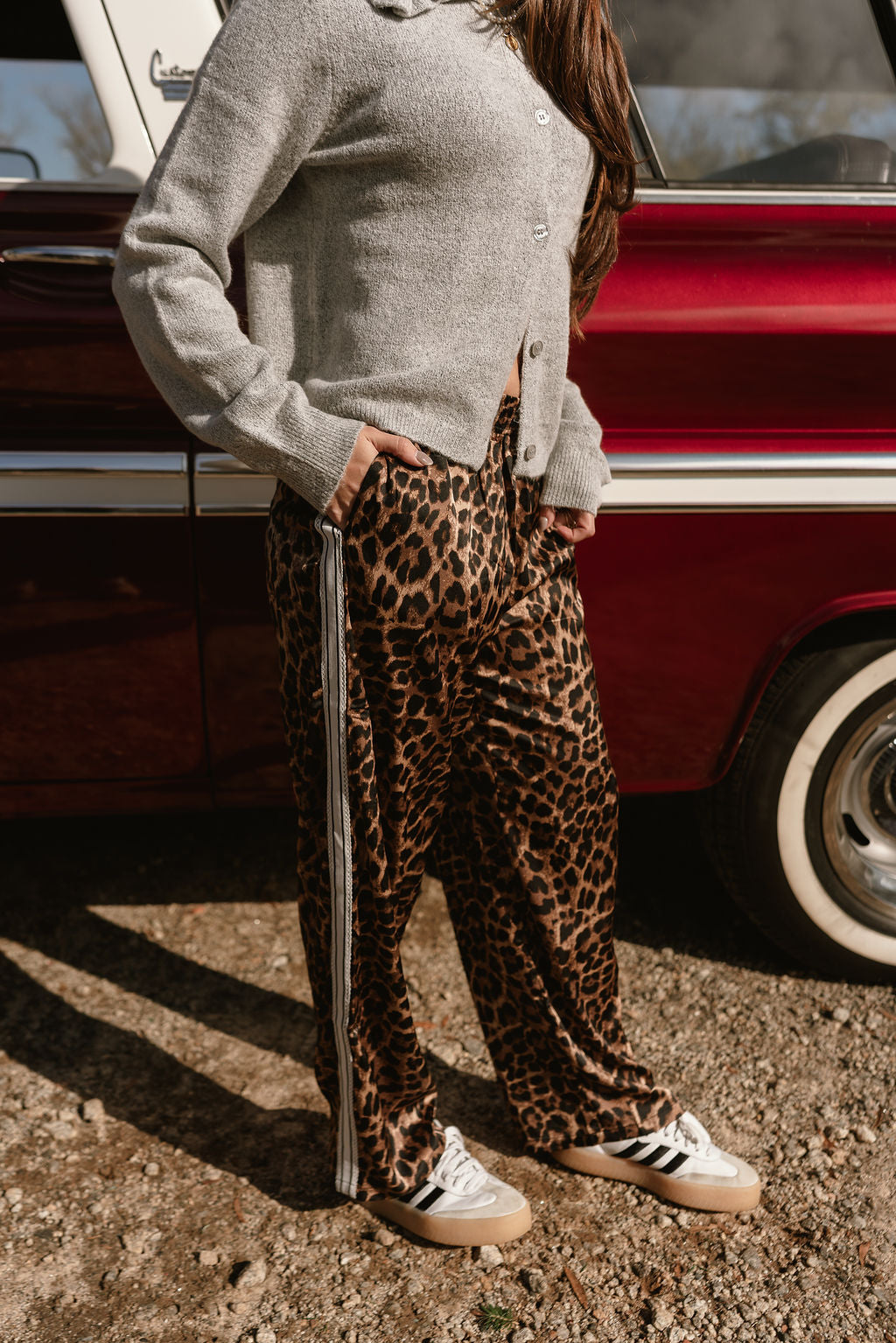 Effortless, chic, and uniquely stylish, the Vera Leopard & White Track Pants are the perfect statement piece for your casual wardrobe. Crafted from lightweight leopard-print fabric, these pants offer comfort and movement while making a bold fashion statement. Delicate white lace trim detailing adds a feminine touch, balancing the edgy leopard pattern with subtle elegance.