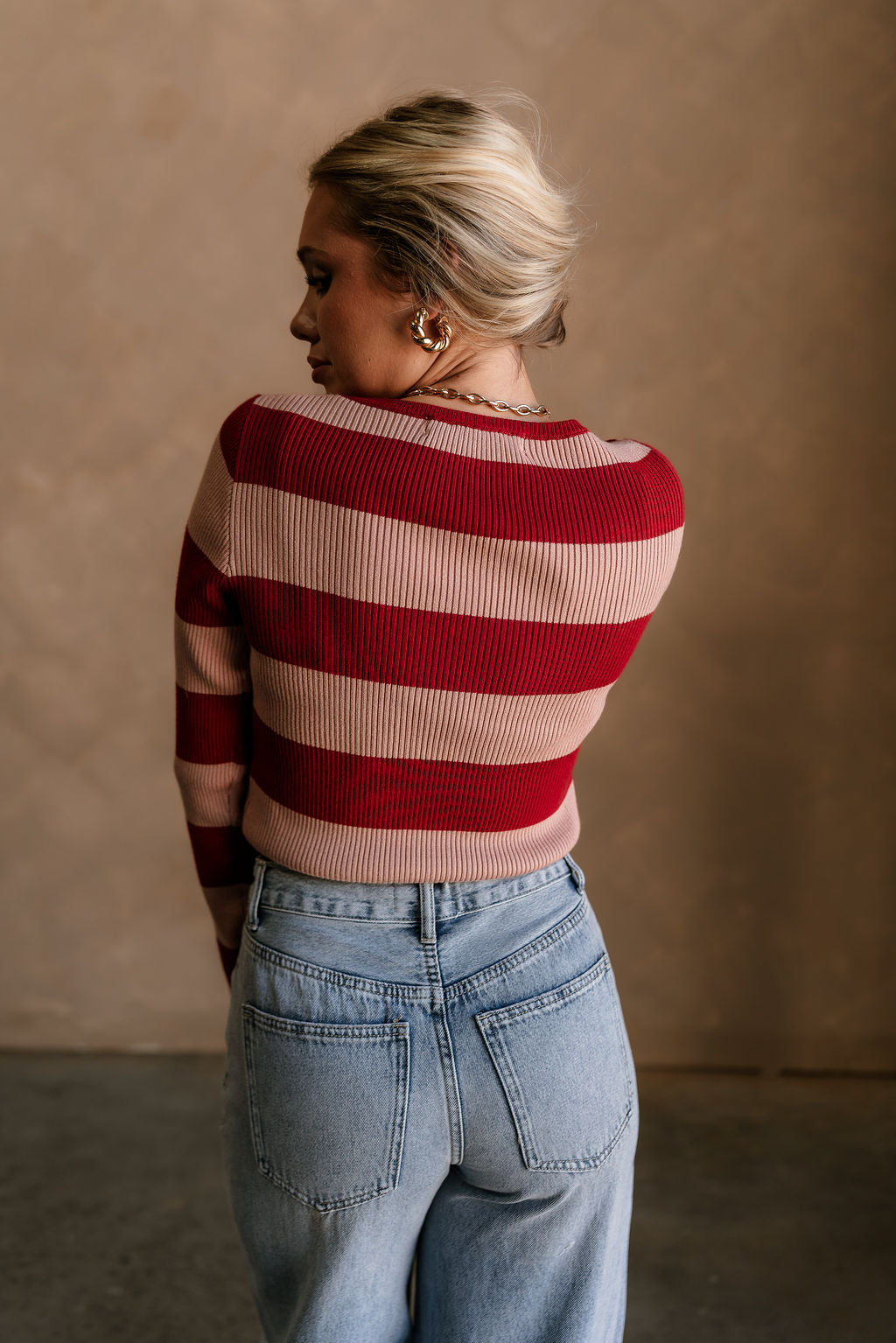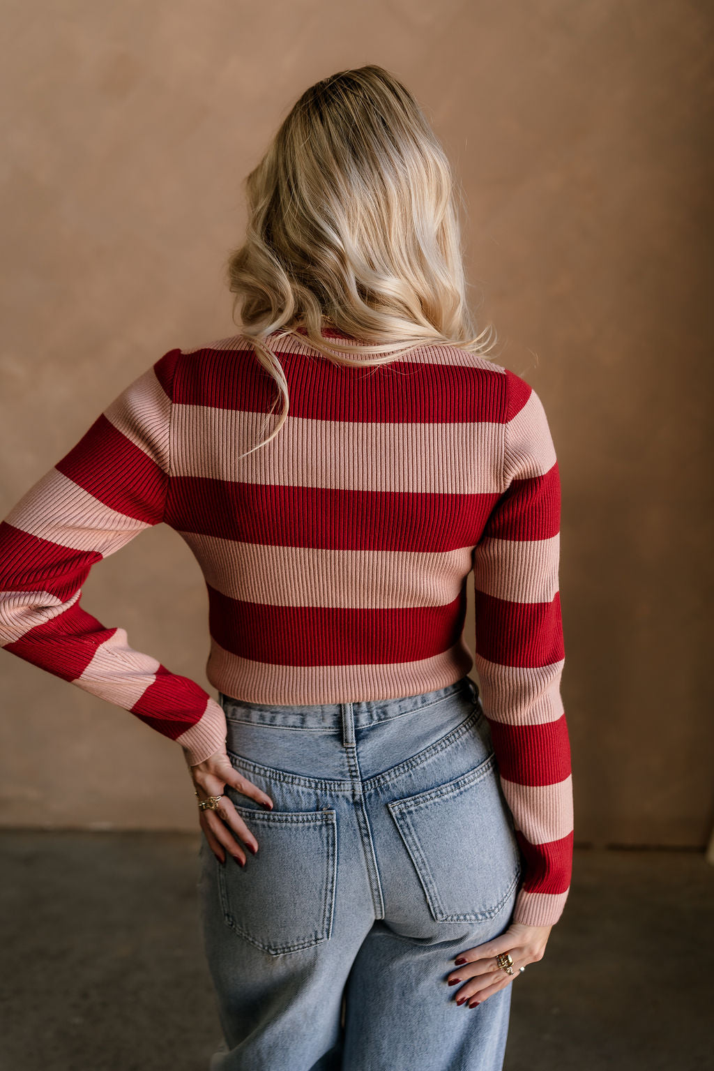 Vivian Deep Red & Pink Ribbed Knit Top