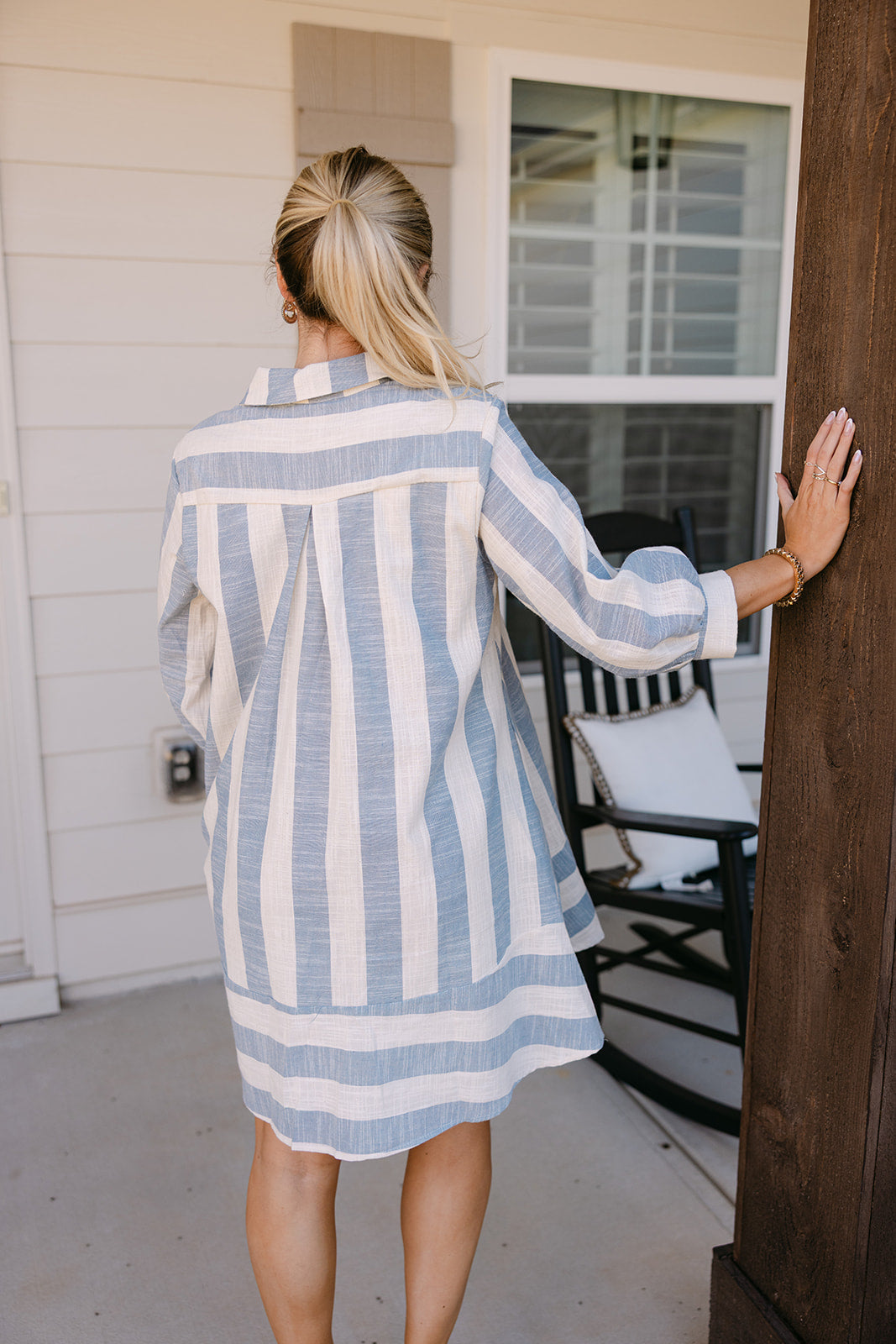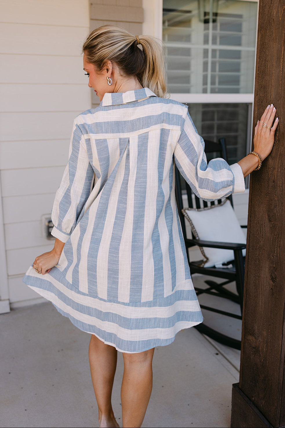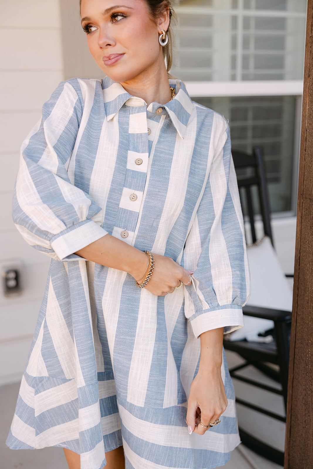Willa Oatmeal & Dusty Blue Linen Stripe Mini Dress