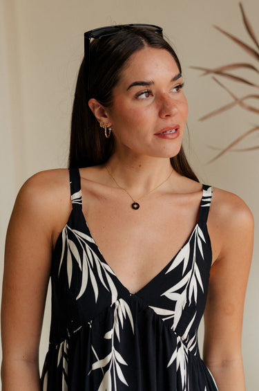 The Julia Black & Gold Starburst Necklace, a stunning accessory that combines celestial beauty with modern elegance. This necklace features an adjustable gold chain link, allowing for a customized fit that complements any neckline. At its center is a striking black medallion adorned with a radiant gold starburst design, creating a captivating contrast. Perfect for adding a touch of glamour to both casual and formal outfits, the Julia Black & Gold Starburst Necklace is a versatile piece that will enhance any jewelry collection. Elevate your style with this exquisite and eye-catching necklace.